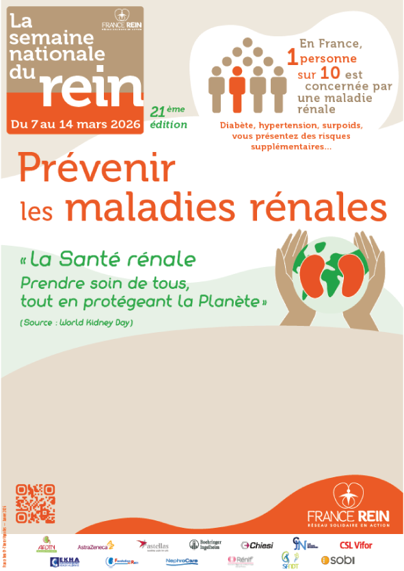 En 2026 le thème de la Semaine Nationale du Rein suit le thème mondial proposé par la Word Kidney Fondation, « La Santé rénale, Prendre soin de tous, tout en protégeant la Planète ».